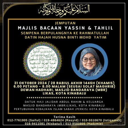 Doa & Tahlil Datin Husna Mohd Yatim - Pertubuhan Kebajikan Islam Sabah Bahagian Kota Kinabalu