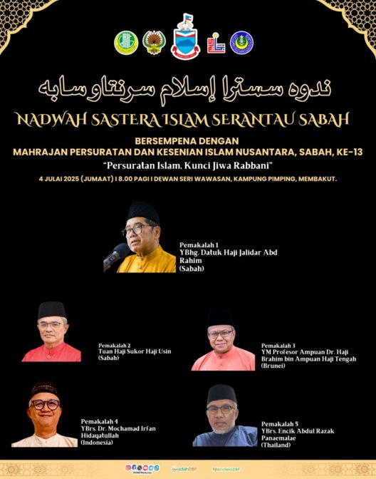Nadwah Sastera Islam Serantau Sabah sempena Mahrajan Persuratan dan Kesenian Islam Nusantara ke-13 telah berlangsung dengan penuh semangat keilmuan dan budaya di Dewan Seri Wawasan, Kampung Pimping, Membakut, dengan tema "Persuratan Islam: Kunci Jiwa Rabbani." Majlis ini telah dirasmikan oleh YB Datuk Dr. Haji Mohd Arifin Mohd Arif, Menteri Sains, Teknologi dan Inovasi Sabah, yang menyatakan harapan agar seni dan sastera Islam terus berkembang seiring dengan nilai-nilai murni dan prinsip syariah.